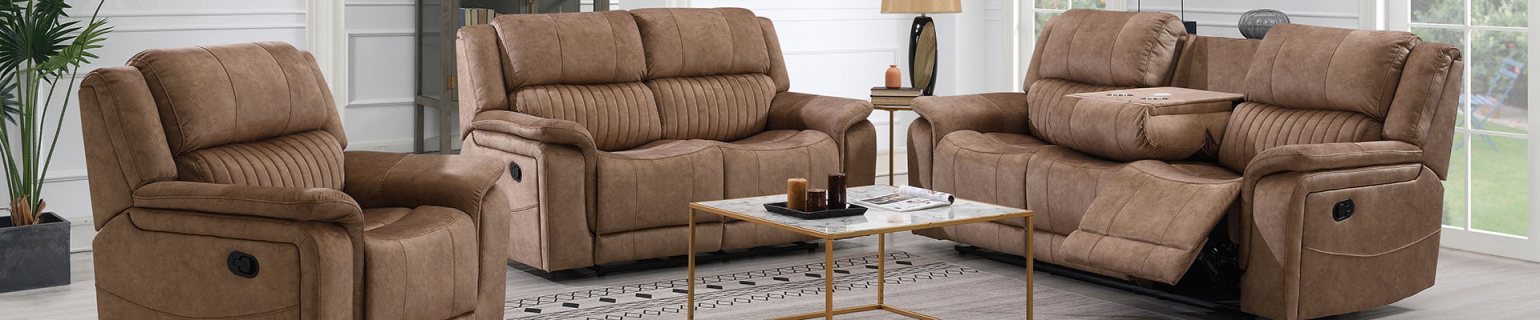 The Albrun manual reclining sofa collection combines comfort, style and practicality, making it a versatile choice for modern living. Upholstered in a soft-touch faux light brown suede fabric, it is a great choice for your home. Designed with comfort in mind, Albrun offers excellent lumbar, neck and arm support, ensuring a cosy and supportive sit. The back cushions are finished with subtle panel detailing that adds a touch of refinement, while the foam-filled seat and back interiors provide both durability and lasting comfort. With its combination of stylish finishes, thoughtful detailing and supportive design, the Albrun sofa is an inviting all-rounder, perfect for unwinding at the end of a busy day. It is also available in manual reclining in a dark brown colourway and for those looking for electric reclining functionality, choose either the light grey or dark grey faux suede options.