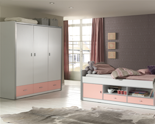 If space is limited, go for bedroom furniture with built-in storage. For example, Vipack’s Bonny & Parisot collections have a wonderful range of beds with built-in wardrobes, shelves, slide-out desks and more. In terms of colours, go for something that complements the other furniture and decor in the room or something that will brighten up the room if it is quite dark currently. You could also invest in a bedside locker for more space and somewhere for your child to place their night lamp or book. These also come in a range of sizes with one, two or three drawers. Some also include shelves. Again, check the dimensions. You don't want the bedside locker to be too tall or too low. Dimensions really are key in every room! Storage boxes or underbed drawers are also fantastic storage solutions. These are perfect for keeping your child’s room clutter-free.