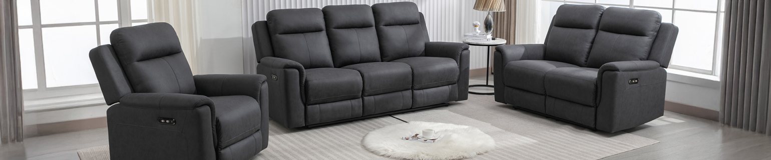 Introduce effortless comfort and modern elegance into your home with the Fenton collection. Upholstered in a soft gunmetal grey fabric, these beautifully crafted electric reclining sofas offer a contemporary look that adds subtle sophistication and visual interest to any living space. Available as a 3 seater, 2 seater, and armchair, each piece features plush cushioning designed to envelop you in comfort while providing stylish support. With smooth electric reclining functionality, the Fenton range makes it easier than ever to unwind at the touch of a button—perfect for everyday relaxation or cosy movie nights.