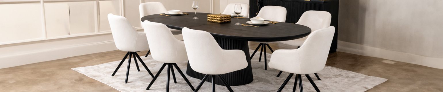 The Gabriella dining collection combines contemporary elegance with bold sculptural design, making it a standout choice for modern interiors. Crafted in a rich black wood veneer, each piece features a striking ridged base that adds texture and visual interest. The collection includes 6 and 8 seater dining tables with beautifully detailed herringbone pattern tops, perfect for stylish entertaining...READ MORE