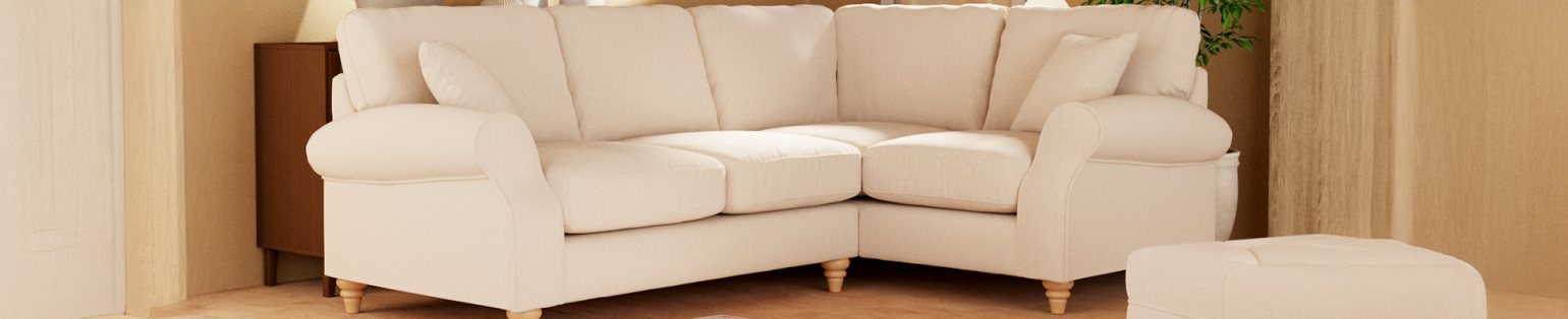 Timeless elegance meets everyday comfort in the Hazel fabric sofa collection. Upholstered in a stunning selection of premium fabrics, each piece is finished with beautifully turned wooden legs, available in your choice of light natural oak or dark burnished beech. With its classic silhouette, scrolled armrests, and generously sized seat and back cushions offering excellent lumbar support, Hazel suits both traditional and modern interiors with ease. Every sofa includes two feather-filled scatter cushions (one with the snuggler), adding a touch of luxury and softness. Meubles have curated a select number of fabric and leg colour combinations and are offering them for sale online in these colourways. Additional colourways are available. If you are interested in some alternative combinations, please speak to a member of our sales team in our Kilkenny store and they will be more than happy to discuss all options with you. Choose from a 4 seater corner sofa, a 4 seater sofa, 3 seater sofa, 2 seater sofa, snuggler or armchair.