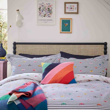 A fresh take on a timeless design, the Margot King Duvet cover set from Helena Springfield features a hand-drawn watercolour stripe repeating across a white cotton base. Immerse yourself in the blended palette of blue, green and aqua tones and flip over to reveal a spotty print on the reverse. Margot is printed on 100% BCI cotton sourced through the Better Cotton Initiative for complete peace of mind....