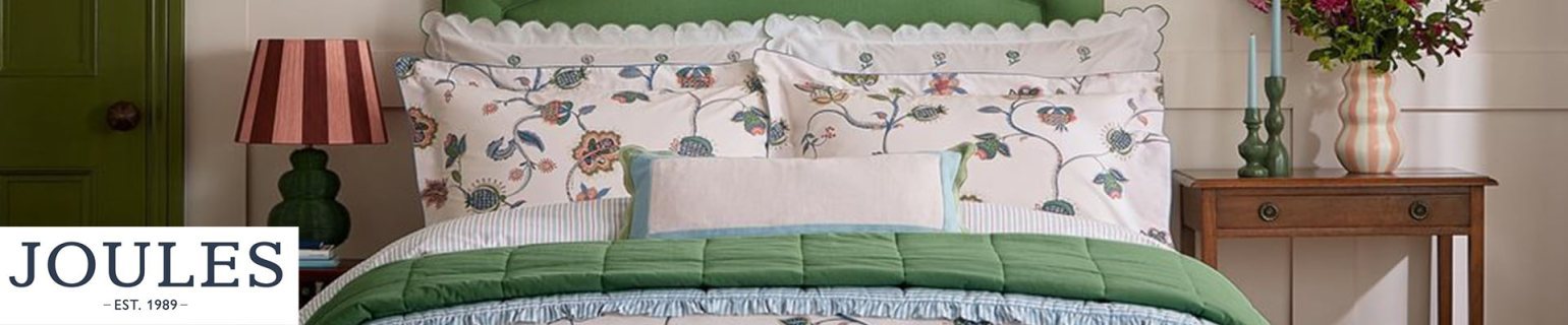 Founded in 1989 when Tom Joule, the son of a retailer, set up shop at a rural country show, Joules began with a bold vision to redefine British classics through quality craftsmanship and thoughtful detail. Inspired by country life yet designed for modern living, the brand quickly became synonymous with effortless British style and distinctive character. Signature prints, rich colours and playful finishing touches soon set Joules apart, earning a loyal following. Today, under the continued guidance of founder Tom Joule, the brand brings its heritage and creativity into the home with beautifully designed bed linen, towels and other home furnishings. Reimagining what it pioneered more than three and a half decades ago, Joules continues to blend timeless style with comfort and practicality for everyday living.